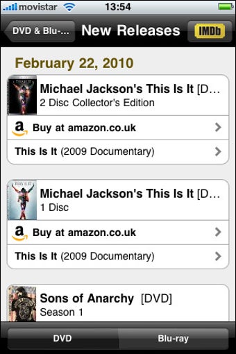 IMDb Filme & TV bietet von iPod Touch oder iPhone aus Zugriff auf die populäre Filmdatenbank IMDb. Die Internet Movie Database enthält zahlreiche Informationen zu Filmen, Fernsehserien und den daran beteiligten Personen wie Schauspieler oder Regisseure.